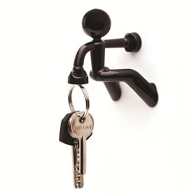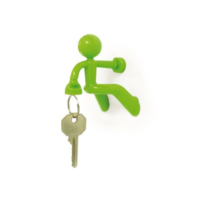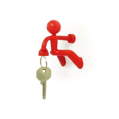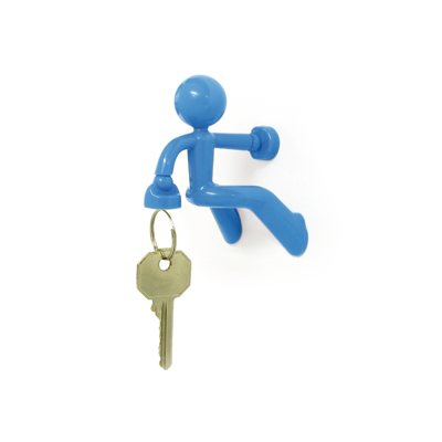 Key Pete can be placed onto any metallic surface. With one hand he holds on tightly, and with the other hand he holds your keys. An adventurer and muscle man....