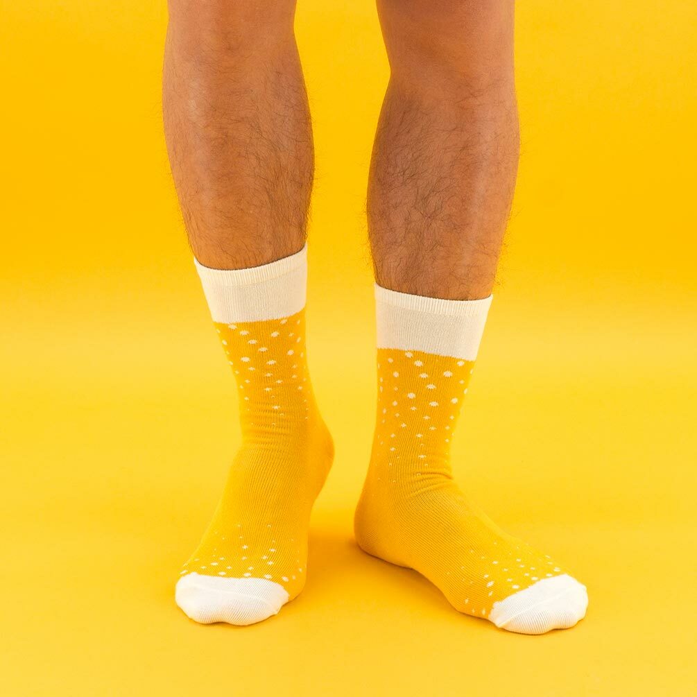 Have fun with the yellow Lager Beer Socks by Luckies of London. Made with soft, luxurious combed cotton, nylon for strength and elastane with spandex for long-lasting fun. They come in a handy beer can with a pull off lid – perfect for storing things once you’ve cracked open the socks.