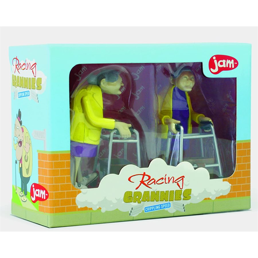 Race these old dears-wind them up-watch them go!! Adjust the grannies arms to find the perfect race position. It is estimated there will be 80 million people 85 or older in the next 10 years so get your practice in now with these two anatomically correct 3.5 inch tall wind up action grannies.