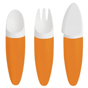 Winner of a 2010 Red Dot design award. Designed based on the distinct way a child grasps objects, this flatware is round and chubby and fills up the palm of the hand. Made in Denmark